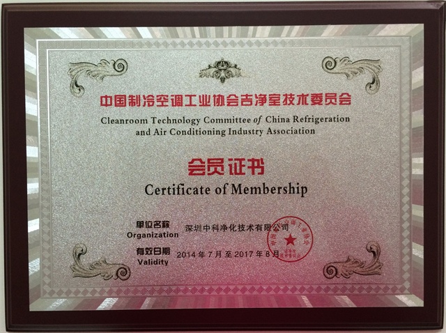 中國制冷空調(diào)工業(yè)協(xié)會會員證書