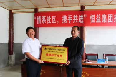 2018年6月1日,為增進社區(qū)發(fā)展,提升社區(qū)公共場所相關配套設施,恒益集團向騰越鎮(zhèn)玉璧社區(qū)芹菜塘自然村捐贈4萬元;